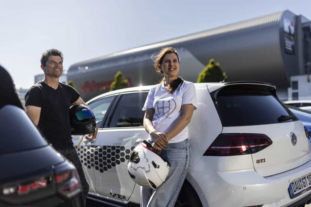 V oči mi je padel mlajši zakonski par. Kot se je izkazalo pozneje v pogovoru, sta to Livia in Chris Grivas. Po rodu sta Američana in oba zagreta avtomobilska navdušenca. Trenutno živita v Nemčiji in s svojim Golfom GTI redno gostujeta na Nürburgringu. “Zdajle sva namenjena na karting stezo, da odpeljeva nekaj voženj za ogrevanje. Stara steza Nordschleife se odpre šele ob petih popoldan in do takrat je karting prava dirkaška zabava. Takoj ob petih greva pa na stezo. Z Golfom, jasno,” nam zaupata. Zakaj ravno Golf GTI? “Odličen avto je. Ni najin edini, imava namreč pestro paleto športnih avtomobilov. Oba sva nora na hitrost in dirke, vedno imava v lasti vsaj enega Golfa GTI. To je legendaren avto, z njim sva zelo zadovoljna. Imava dobre izkušnje, odlično se pelje in brezhibno deluje. Neuničljiv je. Imela sva Golfa tretje generacije, potem še pete generacije z oznako GTI TCR, imela pa sva tudi Golfa VR6. Vedno je kakšen Golf kje na našem dvorišču,” sta dodala in že odbrzela proti pokritemu kartodromu, ki je pri vhodu moderne Grand Prix steze.
