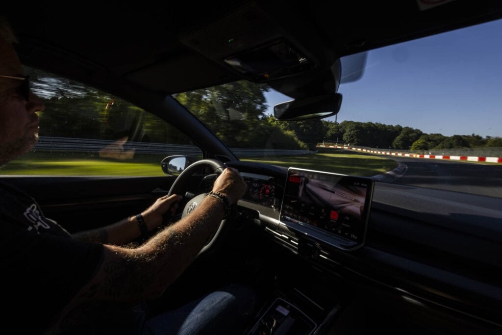 Spodobi se, da bi z našim testnim Golfom GTI Clubsport odpeljal kakšen krog na slovitih 20 kilometrih. Na koncu, potem ko sem imel za seboj enega pa še enega, sem odpeljal kar štiri. Steza je hitra in dinamična, zaradi dolžine pa si je v nekaj odpeljanih krogih težko zapomniti vse ovinke. K sreči je Golf GTI Clubsport brezhibno narejen športnik. Na prenovljenem in večjem digitalnem zaslonu ima poleg programa motorne elektronike ”Sport” še program, ki je posebej prilagojen za stezo Nürburgring. Ko ga vklopim, postane avto še bolj dinamičen in živ. Po žilah mu steče dirkaška kri, ko se še glasneje oglasi skozi dvojni Akrapovičev izpušni sistem iz titana. Clubsport ima sicer enak pogonski agregat kot “običajni” GTI. To je dvolitrski prisilno polnjeni štirivaljnik, ki ima v izvedbi Clubsport približno 30 konjskih moči več, nekaj več motornega navora, a ob tem tudi nekoliko spremenjeno podvozje. Od Golfa GTI je GTI Clubsport nekoliko nižji in ima malenkost trše in bolj dirkališču prilagojeno vzmetenje, kar se na precej dotrajanem asfaltu Nürburgringa še kako pozna.