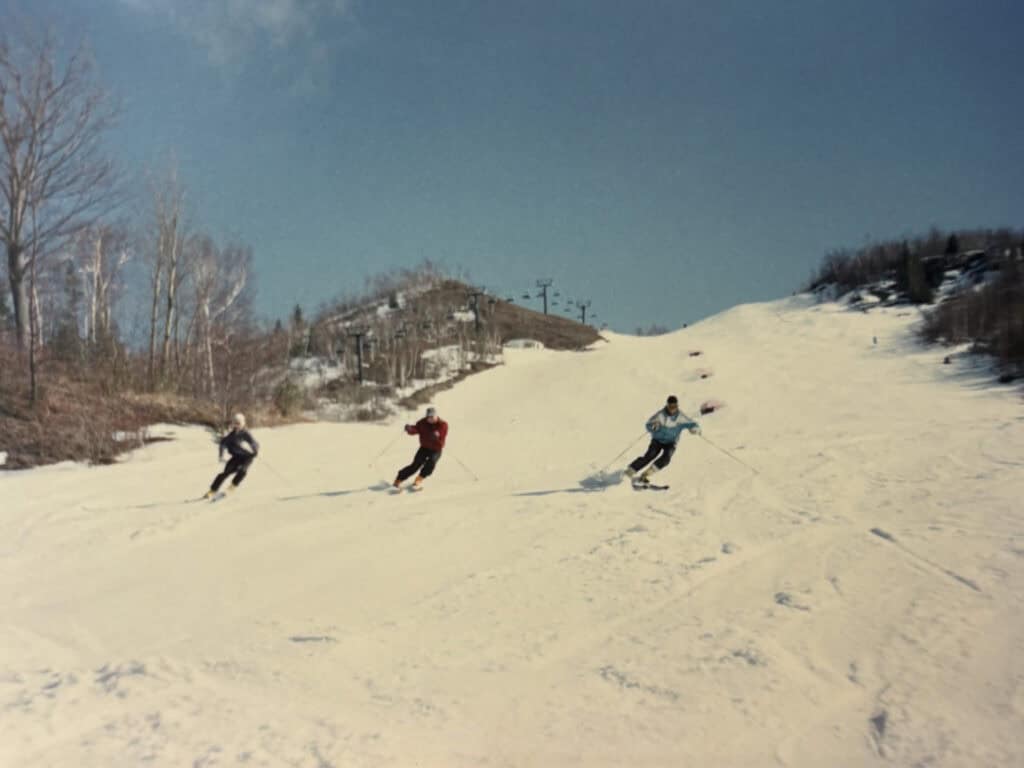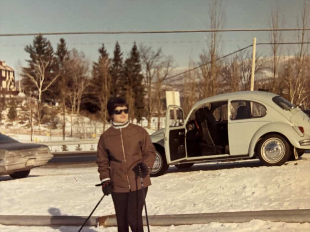 Smučišče in tudi klubska hiša sta že skoraj prazna, ko se med pogovorom zapletemo v debato o avtomobilih. “Hja, tudi s Volkswagnom imam kakšno zgodbo,” začne Marjan, a ga Irena kmalu prekine: “Ko sem prišla v Kanado, si imel Hrošča, kajne?” Marjanovi spomini znova oživijo. “Bil je svetlo modre barve, ki ji v žargonu rečemo himmelblau. S tem Hroščem smo prekrižarili veliko, tudi še pozneje, ko so prišli prvi otroci – dokler ni postal premajhen. Bil je neuničljiv. Zlahka je premagoval hude in mrzle kanadske zime, pa tudi nenavadne ovire.” Spet vskoči Irena in Marjana spomni na snežne zamete, ki so jih s Hroščem premagovali na samosvoj način. “Ko je bilo vreme res grozno in je veter nanašal kupe snega čez cesto, smo najprej z dolgo palico prebadali snežni zamet, da ni v kupu še kaj drugega razen snega, potem pa sem vzel zalet in ga s Hroščem enostavno prebil, da smo se lahko peljali dalje. Takšnih avtomobilov danes ni več,” s spominom na njunega Hrošča prijeten klepet zaključita Irena in Marjan Šenk, ki sta v gričevju Blue Mountains v Kanadi že davno našla svoj kanadski Vitranc.