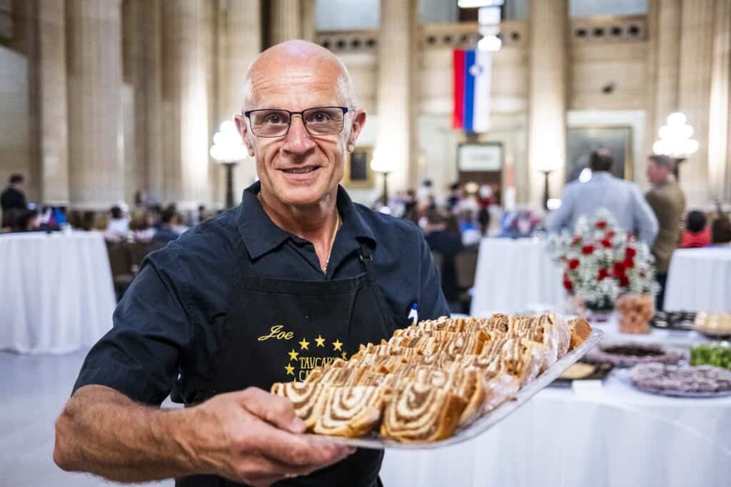 Med fotografiranjem bratov Raddell za našo revijo je v trgovino po nakupih prišel Jože Tavčar. Beseda je dala besedo in naključno smo ugotovili, da je eden od tistih, ki sem jih imel na seznamu sogovornikov, in bi ga le kakšno uro pozneje poklical po telefonu. Jože Tavčar je v zgodnjih šestdesetih, v Cleveland pa je prišel kot šestletnik s svojimi starši leta 1969. Vsak v svojem avtomobilu, kot se za Ameriko spodobi, smo se odpeljali še nekaj kilometrov dlje na vzhod, kjer ima Jože majhno podjetje za katering. »Veliko delam za slovenske prireditve, a ne le zanje,« pravi v lepi, a malo arhaični slovenščini kuhar, ki je že pri šestih letih v prostem času rad pripravljal hrano. »Oče je bil mesar, prej v Sloveniji pa mizar. Starša sta se odločila za selitev v Cleveland, ker je bil tu že stric. Preprosto sta želela boljše življenje. Zame je bilo zelo težko, spominjam se svojih prvih let v Ameriki, ko se nisem dobro počutil. Sčasoma sem se navadil, naredil kuharsko šolo, potem pa so me vse bolj pogosto začeli prositi, naj kuham na slovenskih prireditvah. In tako imam še danes edini slovenski katering v Clevelandu.«